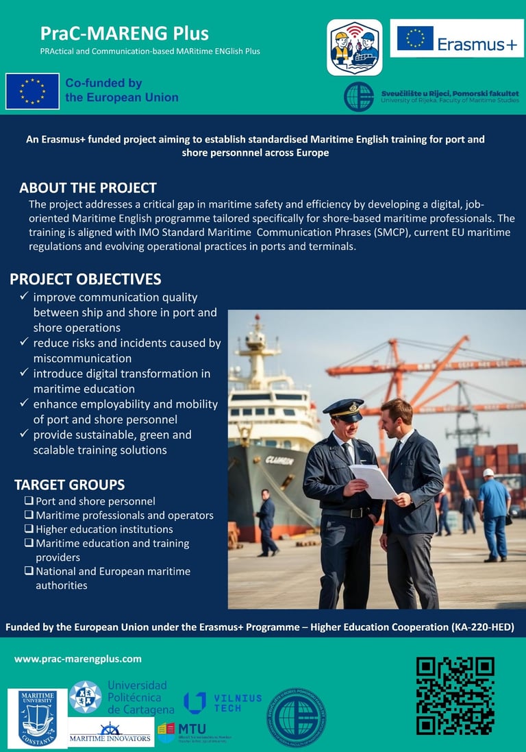 The project focuses on a practice-oriented and communication-based approach aligned with the Standard Marine Communication Phrases (SMCP) and supports the digital transformation of maritime education and training through the development of interactive digital learning modules and scenario-based learning materials.